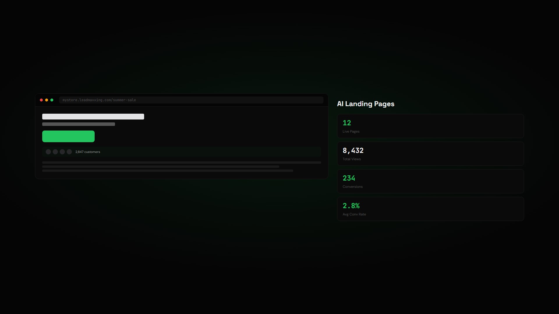 LeadMaxxing reads your CRM, site behavior, and campaign data. Then it generates branded emails, triggered flows, landing pages, and A/B tests — all pushed to your CRM and website automatically.